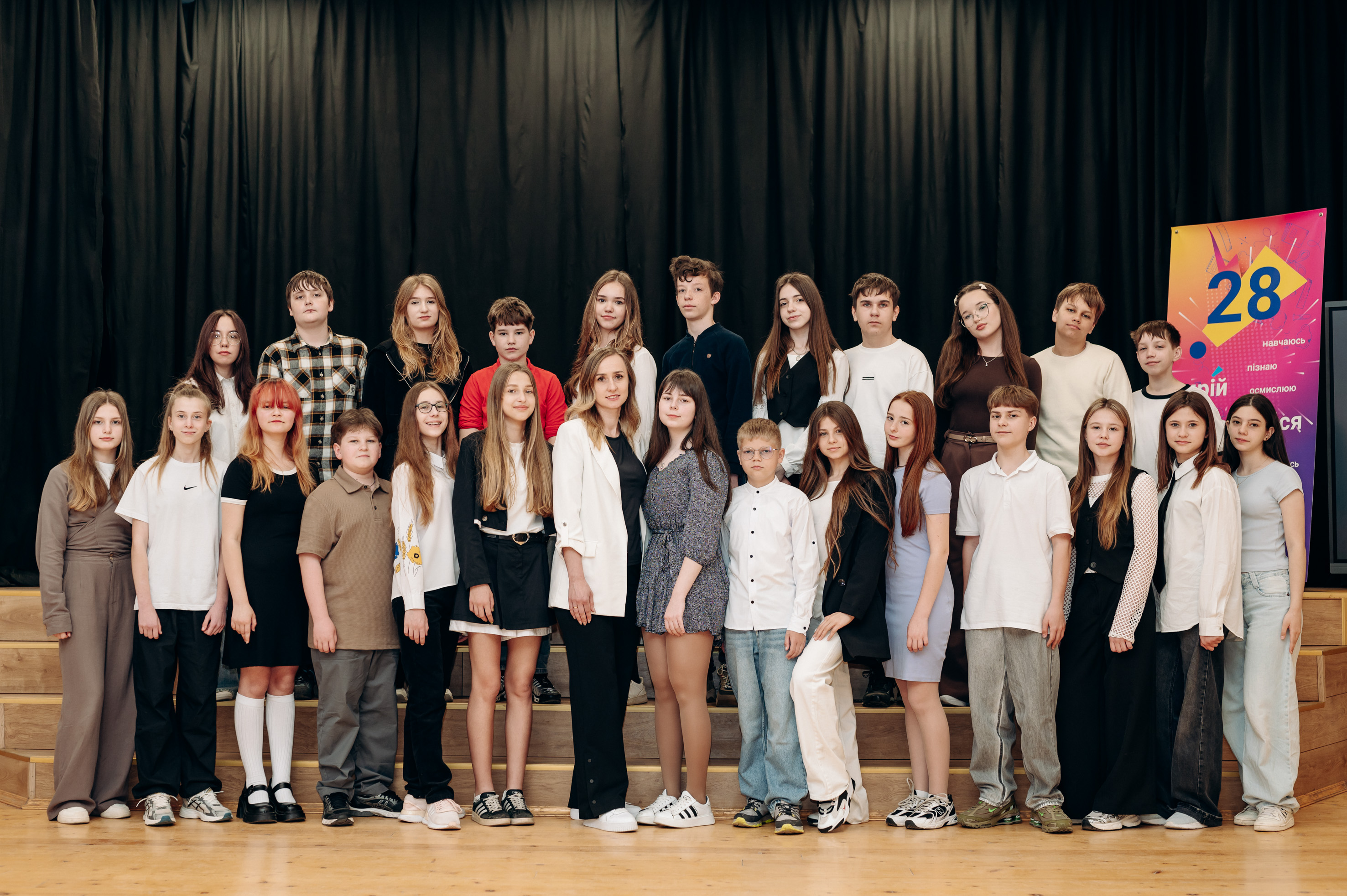 Наш 8-Б… У 2018 році 1 вересня переступили поріг школи 16 хлопчиків і 14 дівчаток. Ми стали колективом шукачів і дослідників, які прагнуть досягнення нових вершин. Чотири роки навчання – це яскраві події у житті нашого класу, цікаві і насичені уроки, веселі конкурси, екскурсії, майстер-класи. Допитливе мислення і творчий потенціал веде до нових здобутків. Ми все зможемо разом із нашим класним керівником – Швець Оксаною Михайлівною.